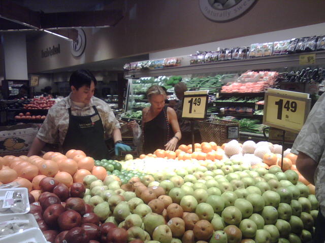 Now, I am just so thankful that I have been given the gift of belief — ah, You remind me of the days I walked across campus saying: I believe. Help Thou my disbelief. Hm. A thought. It does involve choices. The photo this morning is of Suz yesterday at the market, choosing an orange for bran muffins. I took that photo because the whole store was filled with people making choices for this special dinner for this special day. Perhaps You have even more compassion for those who look at this harsh and difficult world — filled with injustice — and judge You! People who say, if THIS is the best God can do — then I choose NO GOD!