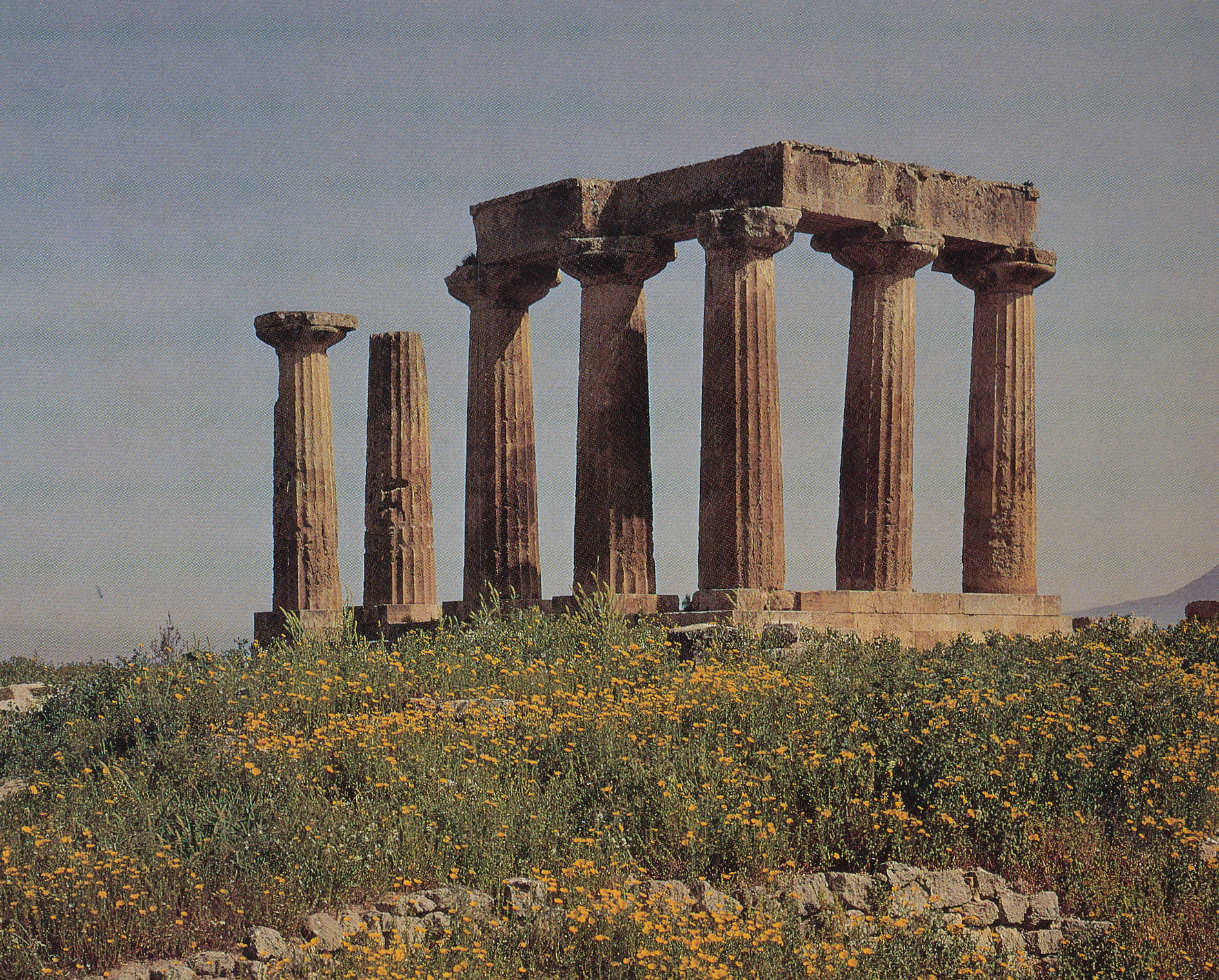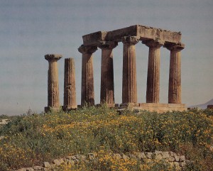 Good Morning, God. This is an old photo from the book The Greek World. When I was there in Corinth a decade or so ago I don’t think I saw anything but pillars. The lintels had fallen.