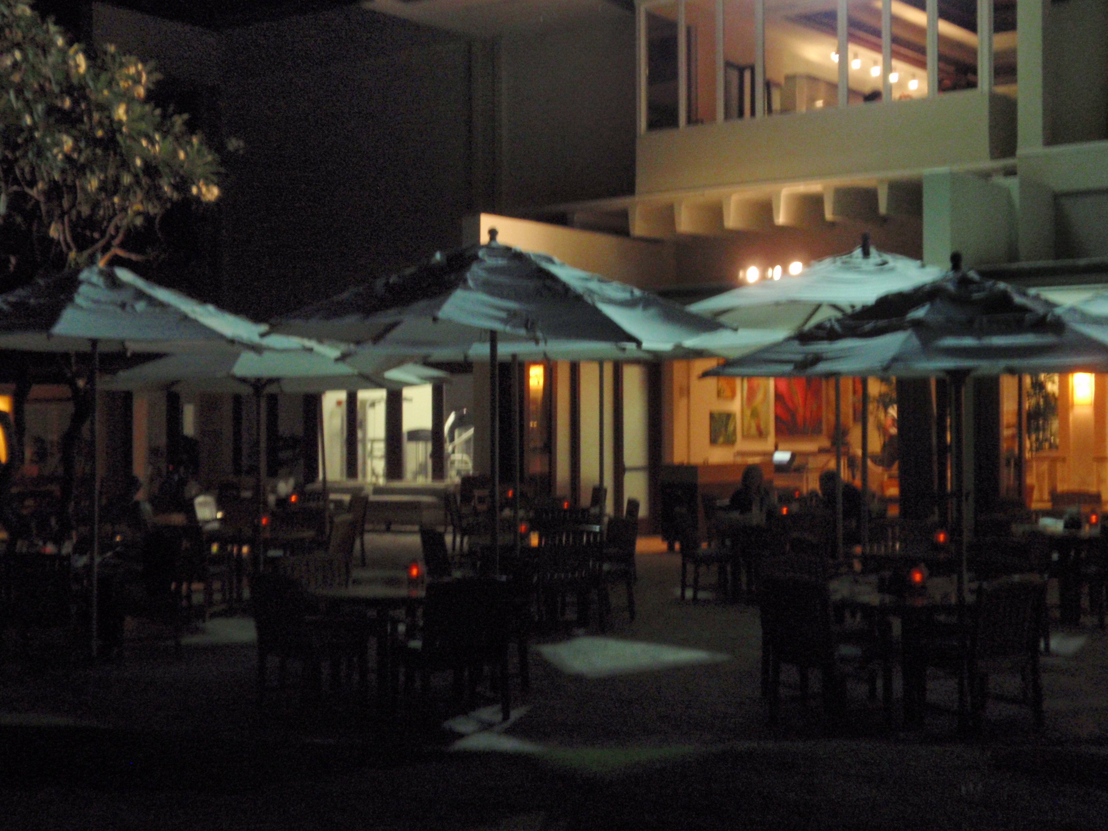 There is something enchanting about going to a familiar place at an unfamiliar time. This is the Plumeria – a restaurant at the Kahala – a place that I love to go to for breakfast. Eating outdoors in the morning is a delight. I see the ocean, the flowers, the palms and the birds — and interesting visitors from far away places.