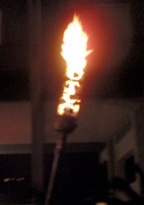 Then again, walking around familiar grounds — but in the dark — seems to turn on a different internal application. It felt as if I were paying more attention — but that isn’t quite right. Hmmm. Maybe it was more that I was walking WITHOUT my WIDE VISUAL focus on. Not that I didn’t see things, I did. But I had to hunt for things to see. For example, I noticed that this tiki torch had a patterned ornamental holder — not the regular canister type.
