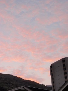Yesterday, was a Gold Star Day, God! Thank YOU! When I went out for my morning jog the sky was filled with fluffy pink cotton ball clouds. I was so excited that I got my camera and SPRINTED down to the end of the block so I could see more sky — our ridge blocks most of the early morning sun. (And, yes, I FEEL the racing muscles reminding me they need more exercise!)