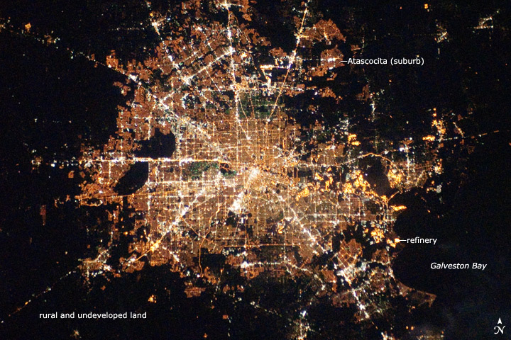 They have a whole website of photos: Earth Observatory Feature: Cities at Night: The View from Space