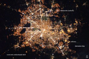 I’m leaving home early tomorrow so I’m doing Thursday’s blog tonight. And speaking of Night — look at this lovely photo of Houston at night. At first glance I thought it was some sort of organism — I just wasn’t sure what kind. And, of course, it is a Mega Organism. The streets going into downtown look like supporting threads in a spider’s web.