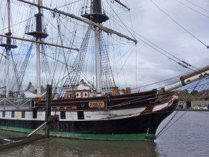 Today we were on a replica of a famine ship. It was a sailing ship used to transport cargo that was outfitted for transporting people. Steerage was what it was called. That meant four people to a bunk 6 feet by 6 feet and the bunks were upper and lower. There were rules about how many people were allowed based on the ships tonage. But young people were counted as a half and children weren’t counted at all. There were maybe 150 to 300 people in a small area. The food was biscuits — hard tack — and raw oatmeal which they could try to cook on deck.
