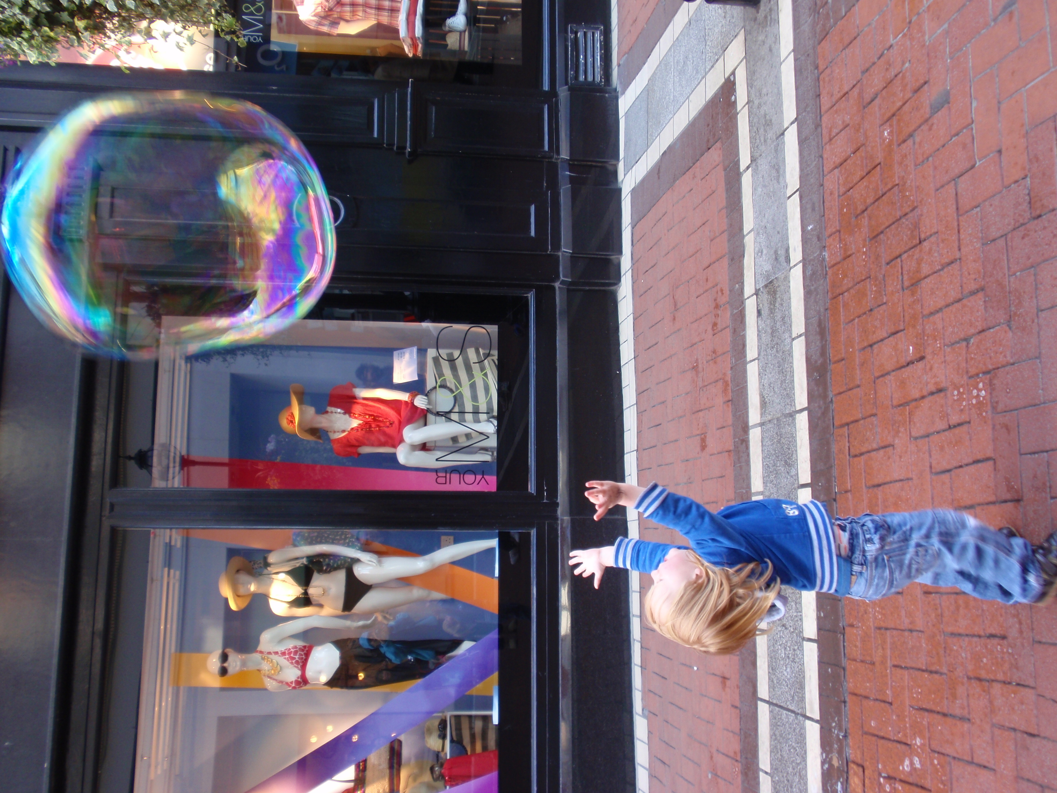 Then we returned through Grafton St. and that is when I got the photo of the child with arms up — enchanted by the giant soap bubble.