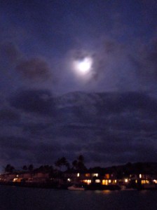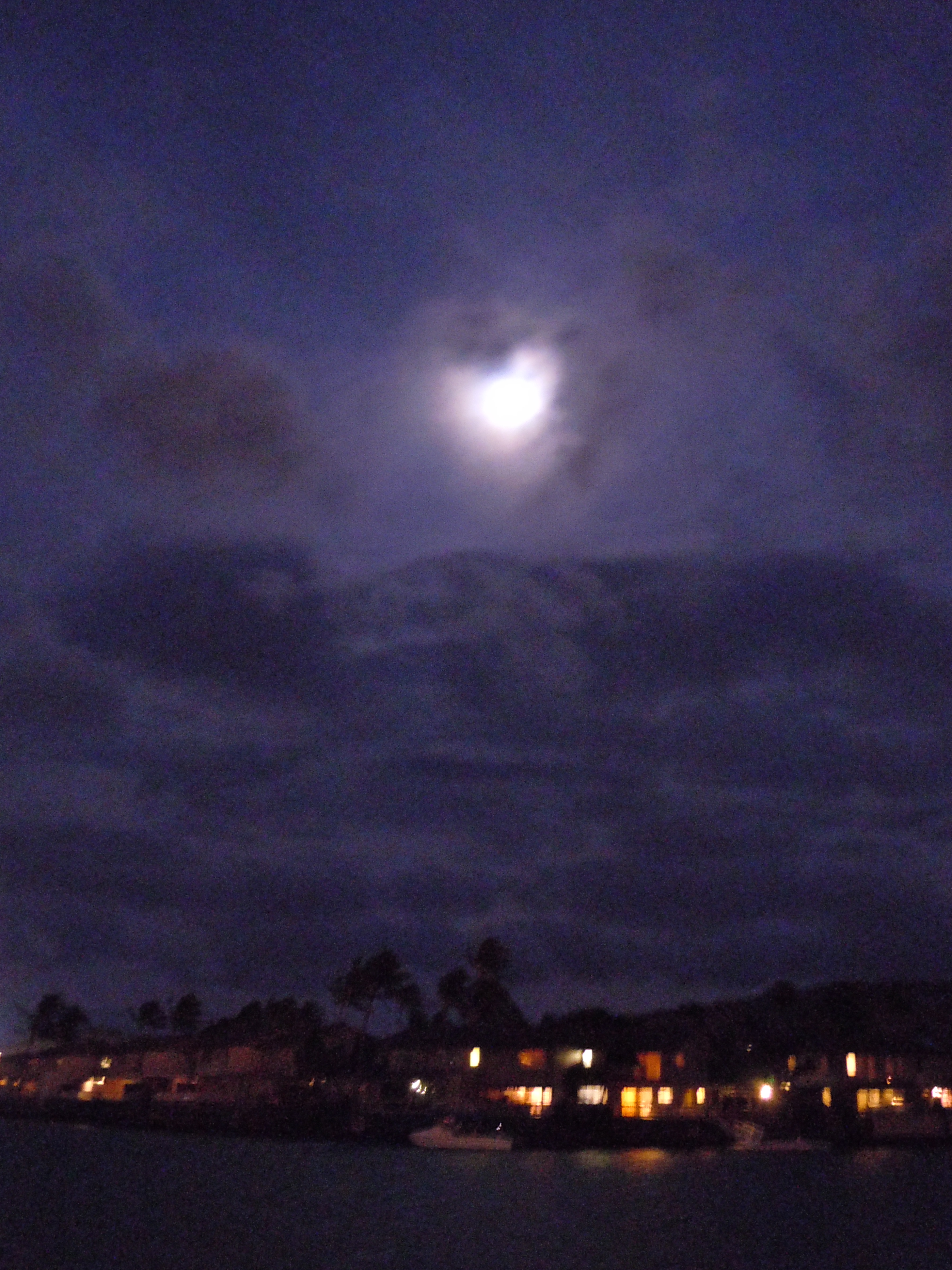 To me the Ocean connects us to all the other islands — large and small. After all our World is 80% water — it’s a deep blue Water World — isn’t it, God. And I ended my day, yesterday, at the Water’s Edge. This time putting my focus on the Sky and the Moon rising.