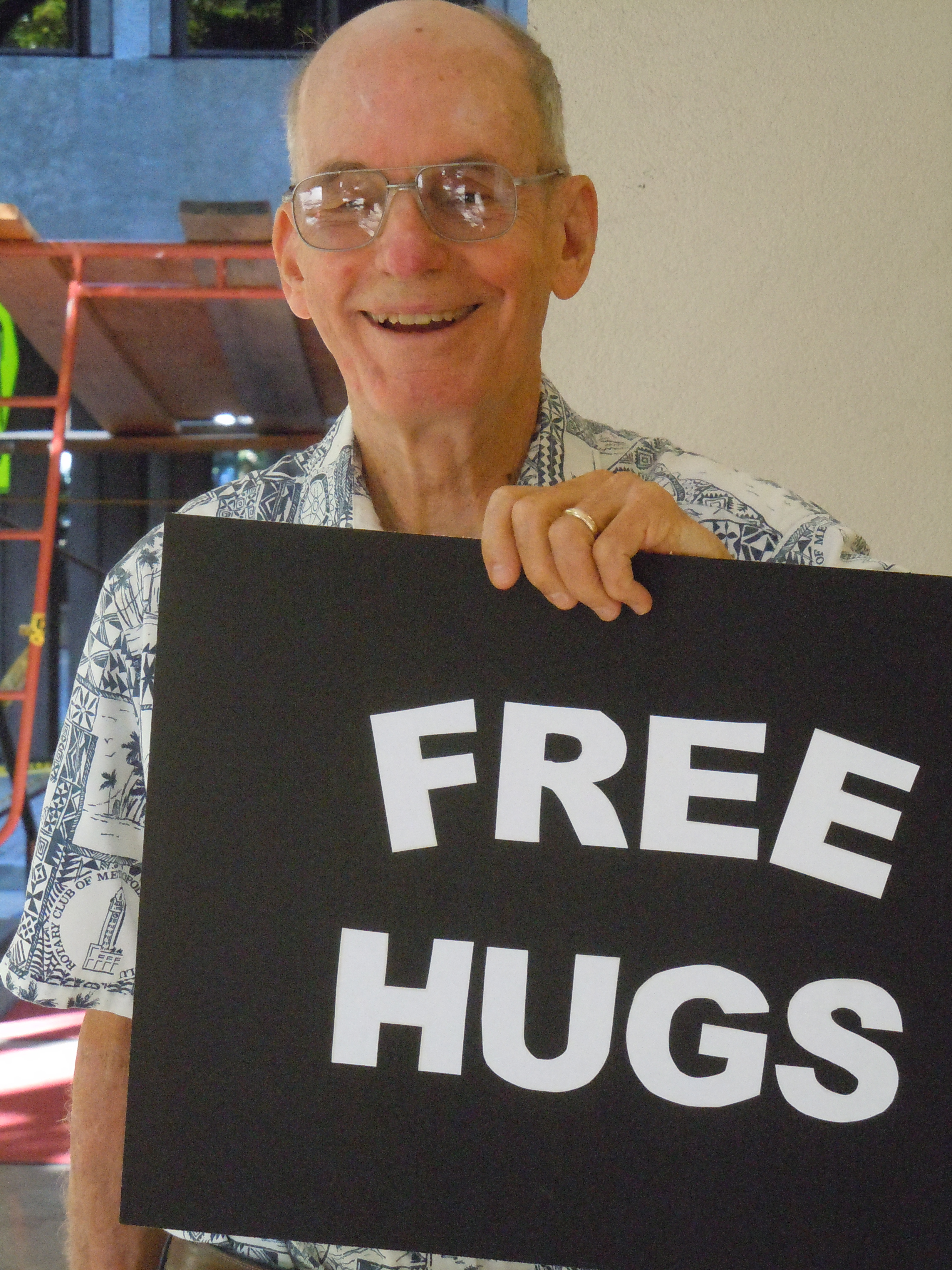 I loved it! How could anyone NOT love it, God? So the idea came to Kit to tell about it when he next gave the “Inspiration” at his Rotary Club . He even bought small hearts that folks could put on their name badges — to indicate that they were willing to receive hugs. It went well and after the meeting we hugged most of the members. The few who walked by us made me sort of sad. Not that I was rejected — but that they didn’t take the time to receive the Gift of Touch.