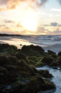 It’s fun to look back on another morning — a morning spent at the beach. I had never noticed those rocks before. But I love them. High tide and Sandy Beach looks like smooth sand — lots of smooth sand. But when the tide is out, up pop the rocks.