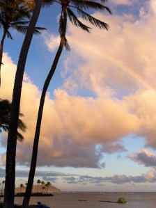 Nothing like observing YOUR creations to make us humble. A rainbow is always breathtaking . . . and one against sunset lit clouds . . . even more so.