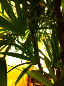 The sight of these overlapping palm branches stopped me last night. I backed up and took a photo. It’s a jumble, but with an underlying pattern. Discovering — perhaps creating — underlying patterns is part of the creative process, too, God.