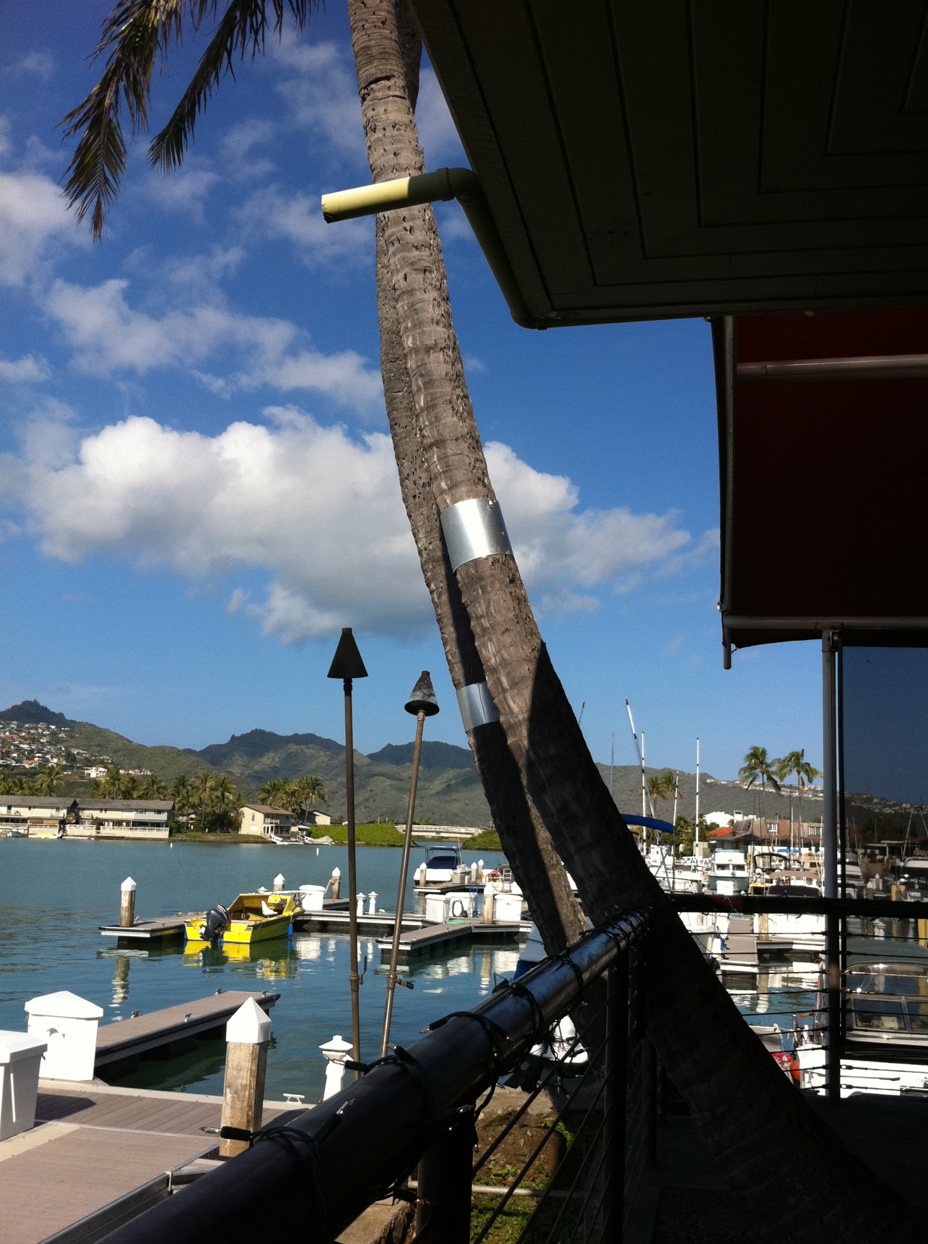 In fact, it is just lovely to be here. A fact that is far easier to APPRECIATE when I am sitting by the marina. Yesterday when I was inching my way OUT of Ala Moana shopping center I wasn’t focused on appreciating. Ah well.