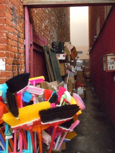 Yesterday, Suz and I went to Chinatown. We had just parked and were looking for the restaurant The Green Door to have lunch when Suz said, “Take a photo, Mom.” We both LOVED the colors of the brooms. Brooms were never these colors a decade ago. But, aside from that, going to Chinatown is like stepping back in Time. The buildings were old — maybe two stories tops — and the feel is one of small shopkeepers and business owners.