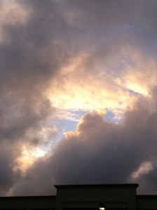 All is still, quiet and dark. The sounds of Kit making coffee come up from the kitchen. And I re-see the GLORIOUS CLOUDS that stopped me in my tracks last evening as I was leaving Kahala Mall. Awesome! I just kept snapping photos — turning first to the right and then the left to make sure I was appreciating everything.