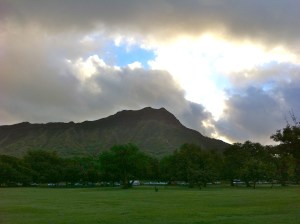 The rain has paused and yesterday I jogged around Kapiolani Park — stopping to take photos — loving the sunlit green grass. Actually, just loving the GREEN. New Life! Hope! And I pray for the Greening of our Country, and our World.