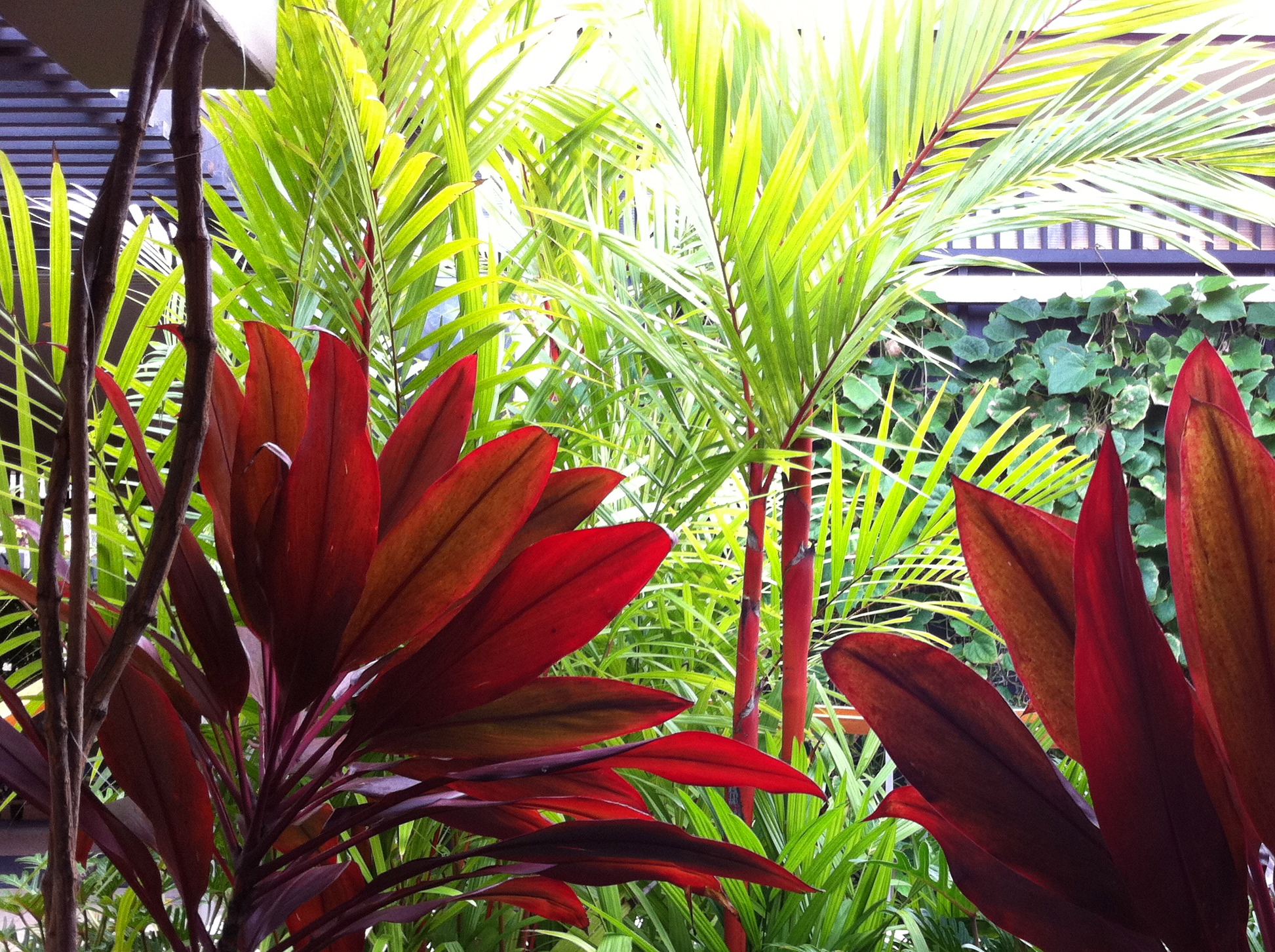 I new day! A day for appreciating the small details of life — like the light through ti plants and palm leaves! A day for taking it easy. A day in which I can choose what I focus on.