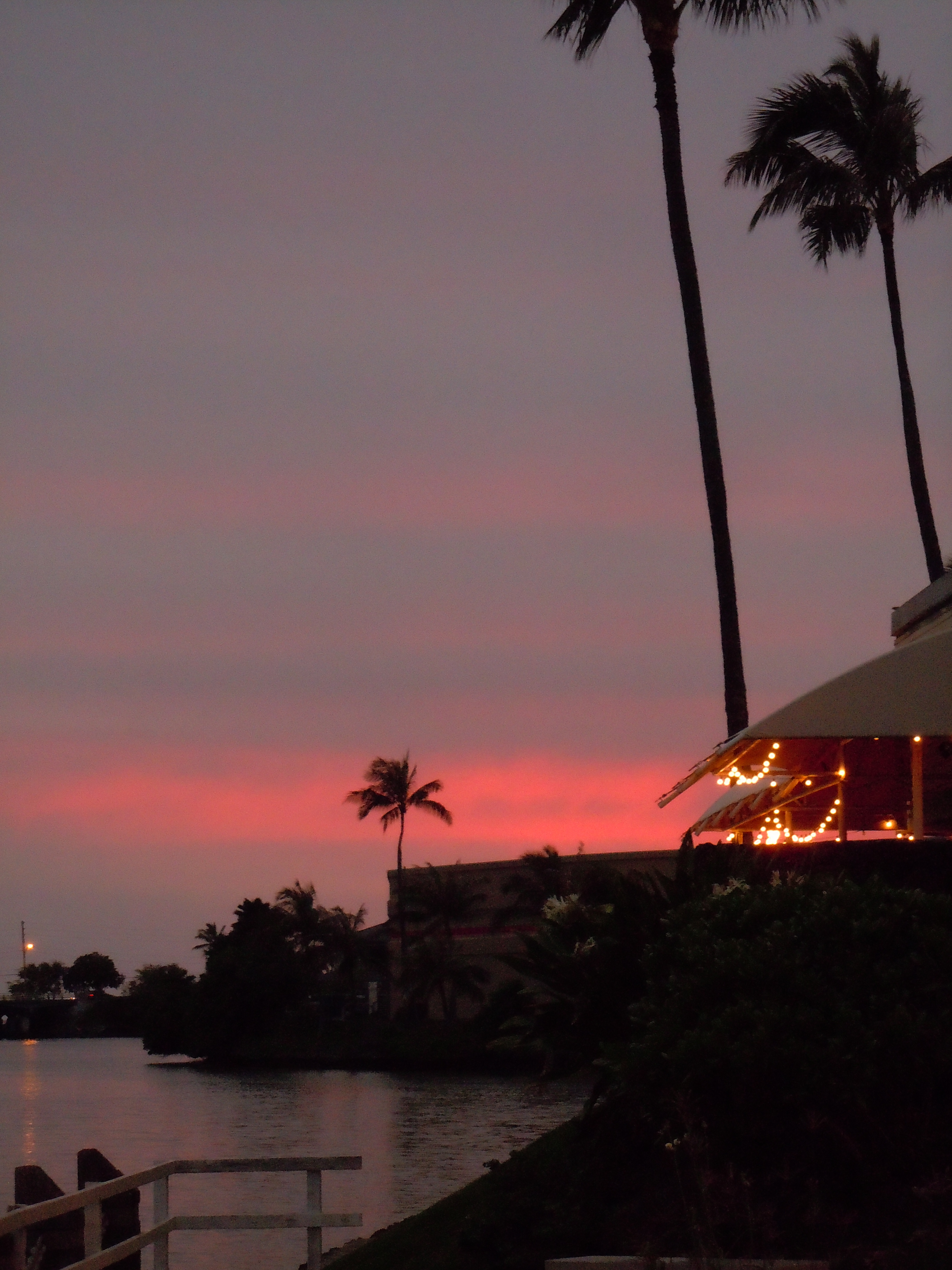 It was a lovely day yesterday, God, with just the quickest bit of color in a grey sky as the sun set. It was the night before the Full Moon and I love eating outside at the Shack on the Marina and hoping to watch the moon rise. It was too grey for the moon to show. But being outside with friends was good enough.