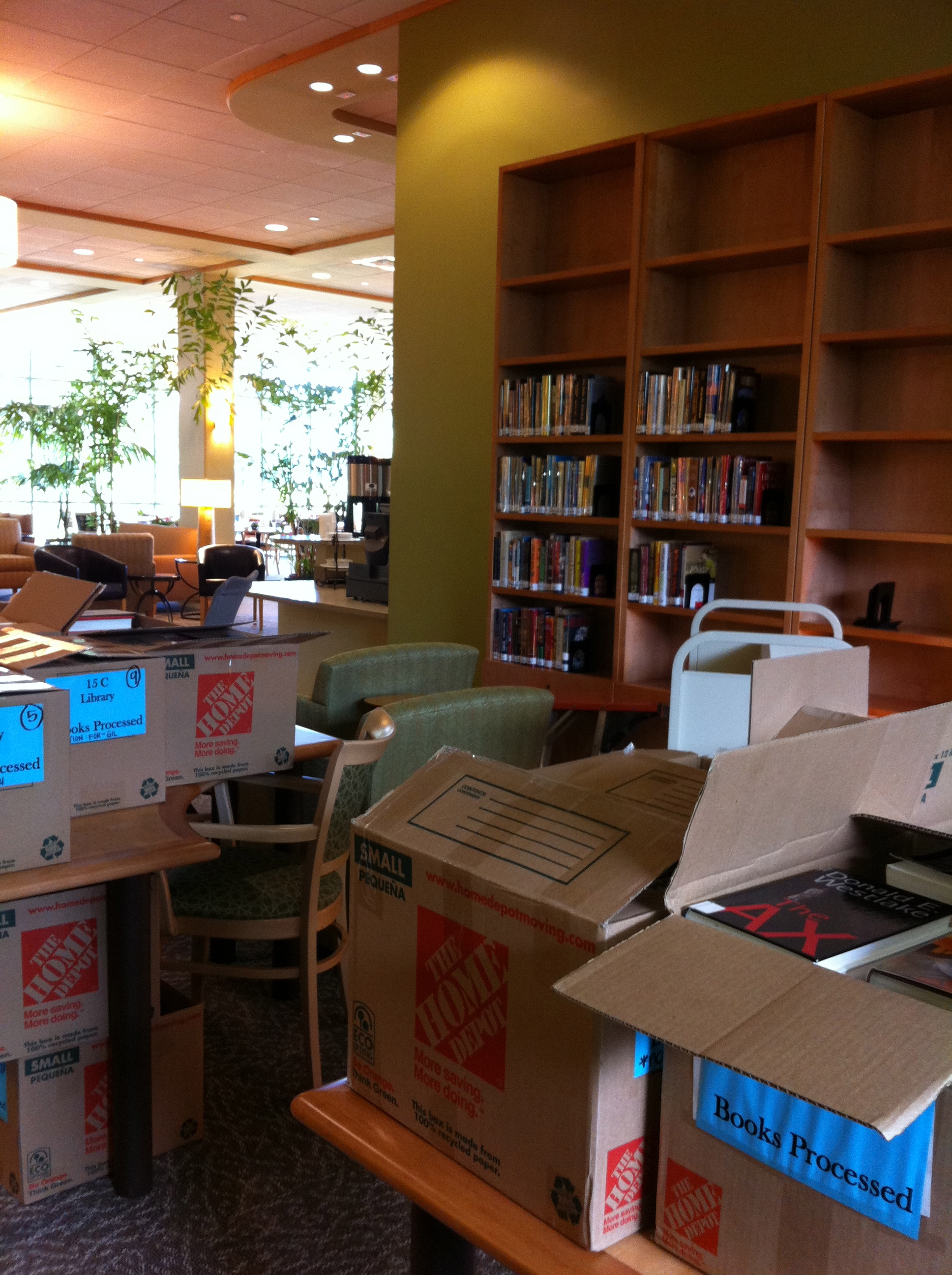 We, well, MOSTLY Jean, have been collecting, screening, reviewing and selecting books for the last 2 years. Property stamping them, putting on plastic jackets, determining a call number, printing out call numbers and bar codes, afixing them and then entering them into the data base. LOTS of work, God, before the books got out on the shelves.