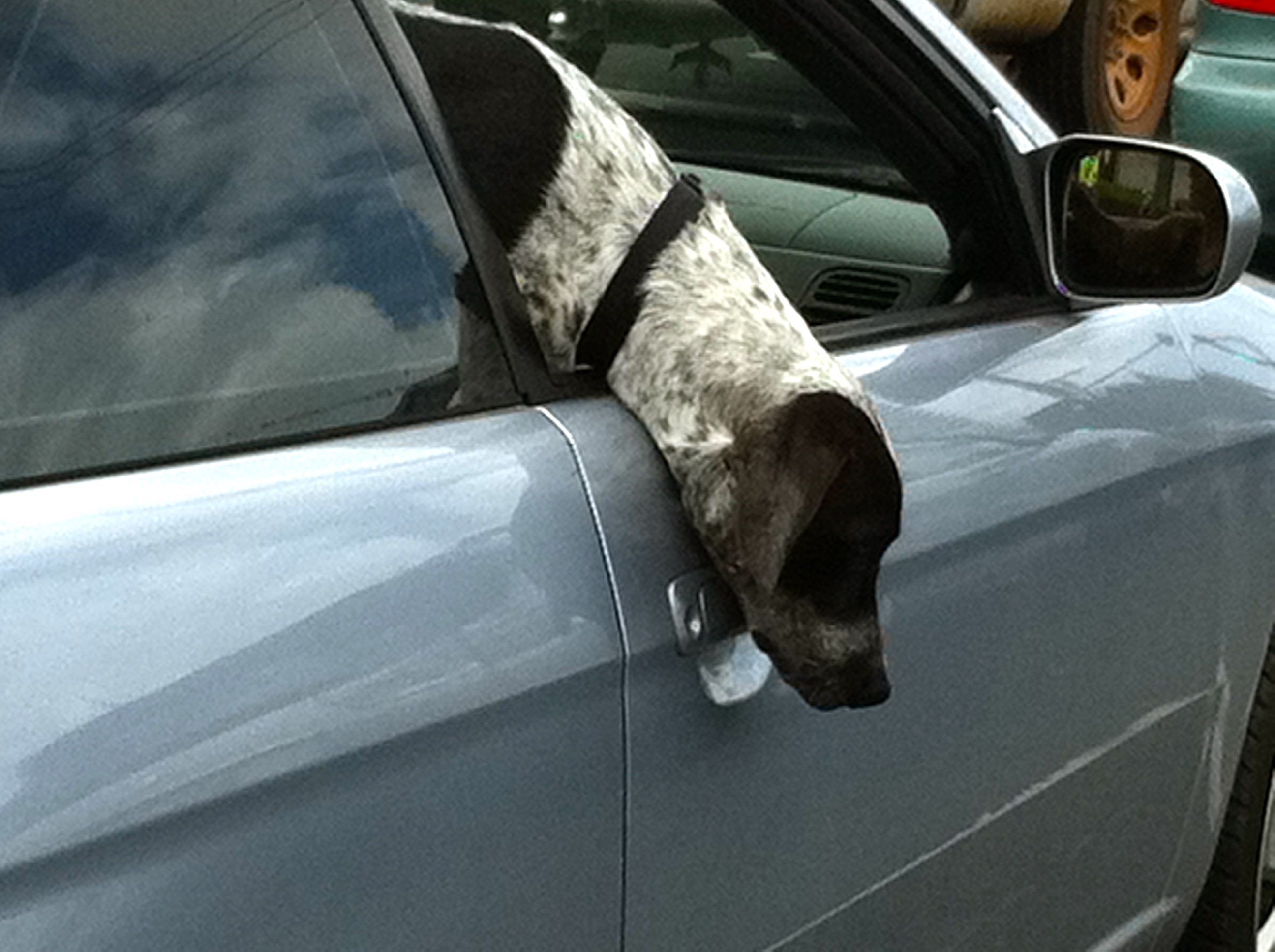 I was so delighted when I saw this dog hanging his head out the car window when we were stopped at a red light.
