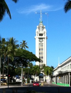 Yesterday I was off to downtown to get my teeth cleaned and checked. As I was walking along, I looked to my right and there was the Aloha Tower. There were only a few yards of visibility — a few more steps and I would have passed it by, unseen.