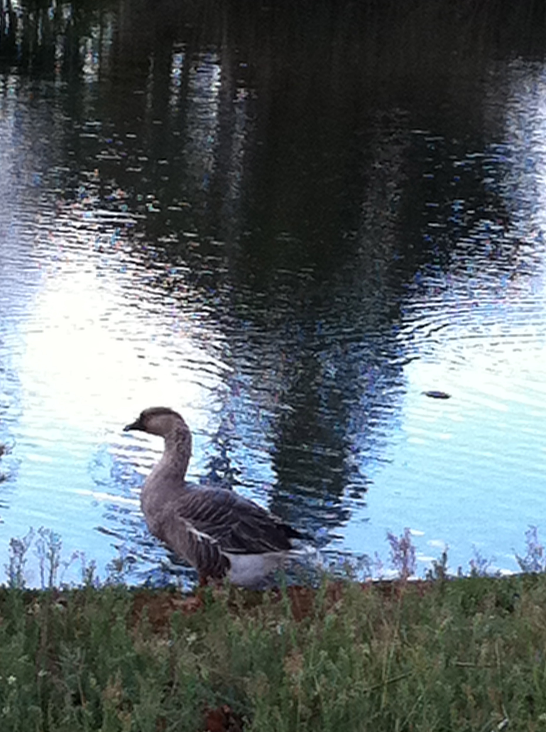a grey goose living in the pond by the Rec Center