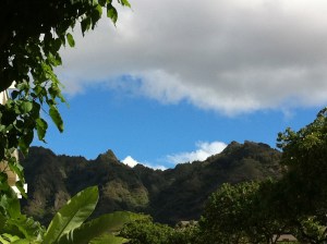 The Ko’olau Mountains at the top of our valley are always green. The ridges turn to a brown as summer lengthens but I can always see green as I look up the valley.