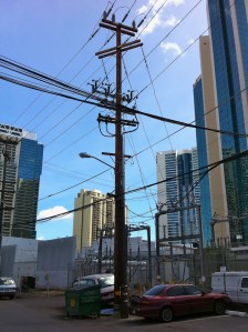 Yesterday found me in the heart of Kakaako, just west of the Ala Moana shopping center. I think of Kakaako as Where the Work Gets Done. Work places are rarely pretty but they are really necessary. I worry about where all the small businesses will go as residential development continues. The high-rises keep coming! And that means adjustments for everyone.