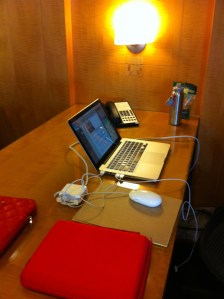 Ah, but when I travel on my own — my True Nature emerges. I got a complimentary upgrade to first class on my flight from Honolulu. And I enjoyed it. Then while waiting for my flight to Tucson, I quickly decided that $19 for a “Day Pass” into the Red Carpet Club was totally worth it. A four hour lay-over was transformed — not so much by the food offered which was only sugar in various forms — as by the sense of spaciousness. I had my own territory. A desk of my own!