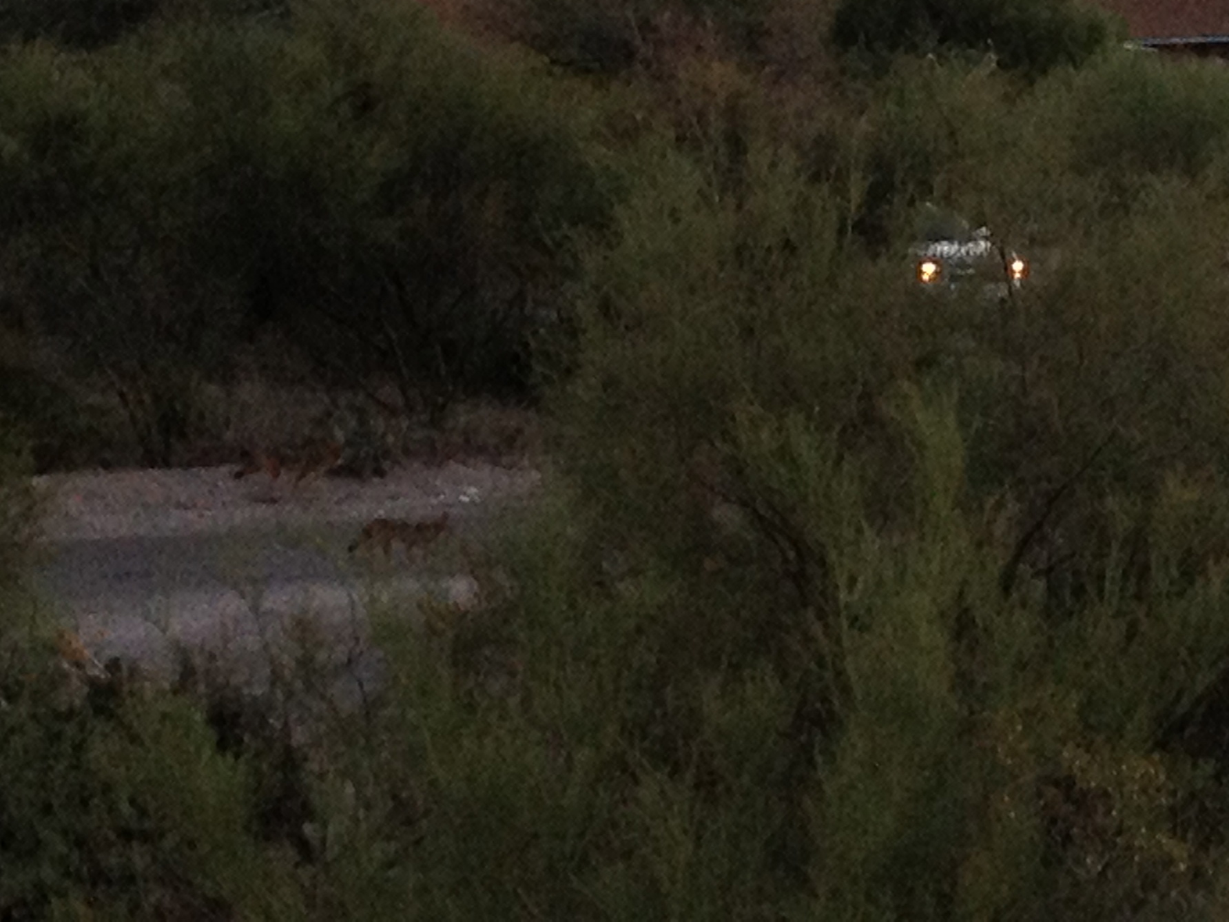 But, what really interests me is our human reaction to coyotes as opposed to wolves. If I had seen three wolves lopping along Sandy’s street — would I be outside AT ALL? Fear of wolves seems far more powerful than of coyotes or even of the cougars who inhabit Sabino Canyon. Not, God, that I am jogging in Sabino Canyon.