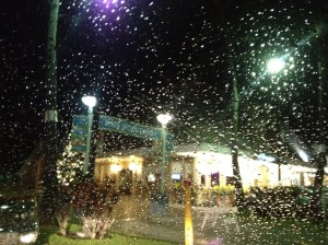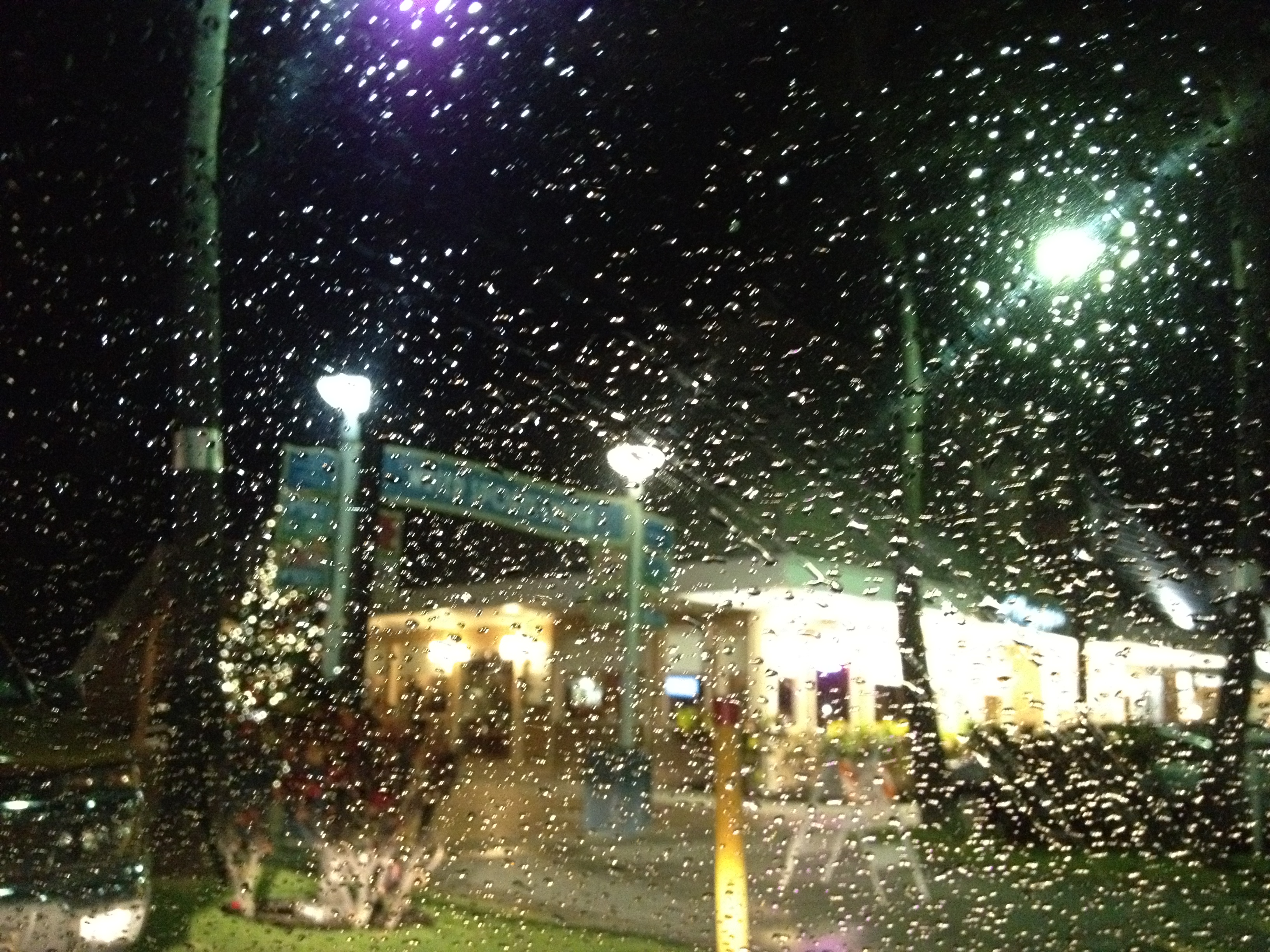 The first thing I noticed was the beauty of the raindrops on our windshield. Then, just as I had my iPhone out and on camera, Kit ran the windshield wipers. Aargh! And, of course, God, then the rain let up.