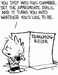 When I think of “becoming” I find my mind going back to Calvin and his Transmogrifer. Wouldn’t that be wonderful, God! I could sit in my prayer chair / transmogrifer and BOINK just become a New Creature. A new improved model.