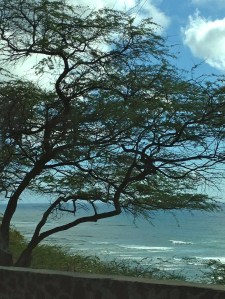 This particular view delights me every time I drive around Diamond Head. The problem is, I drive by. But today they were hanging big metal nets on the side of Diamond Head to stop — or at least slow — falling rocks. So the traffic was stopped. Voila! Photo time!