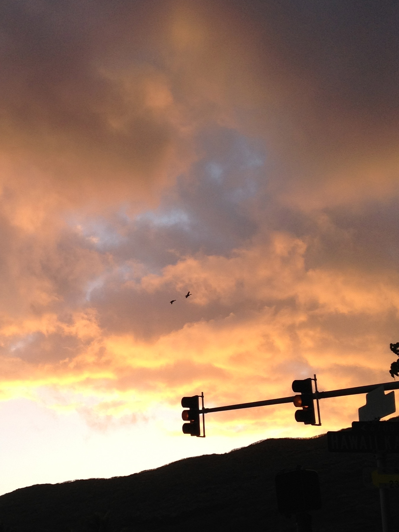 To be sure, the birds are only small black dots on this photo — but catching birds in flight is always a treat. They were flying home just as Kit and I were driving out to celebrate his half birthday. Half-birthday observances are one of his family traditions and I enjoy it.