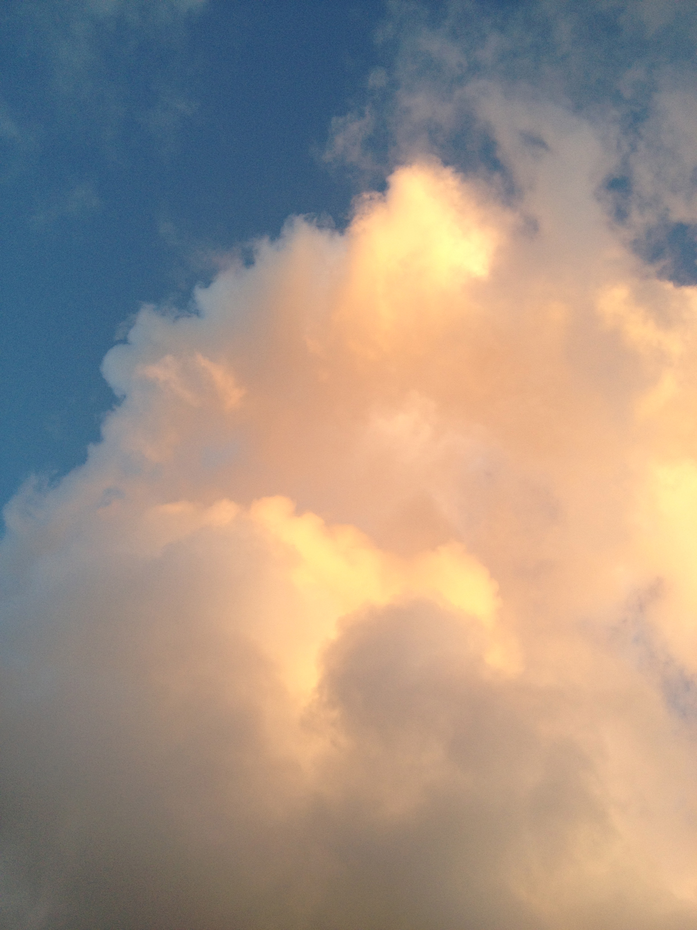 These beautiful clouds greyed up just a few minutes later and looked very much like rain. And it has been that sort of day. Lots of changes in the “weather” and in my “inner weather” too. Lots of feelings, God. I started out excited that my beloved husband Kit returns tomorrow. Then I got a call from my mom — calling me over.