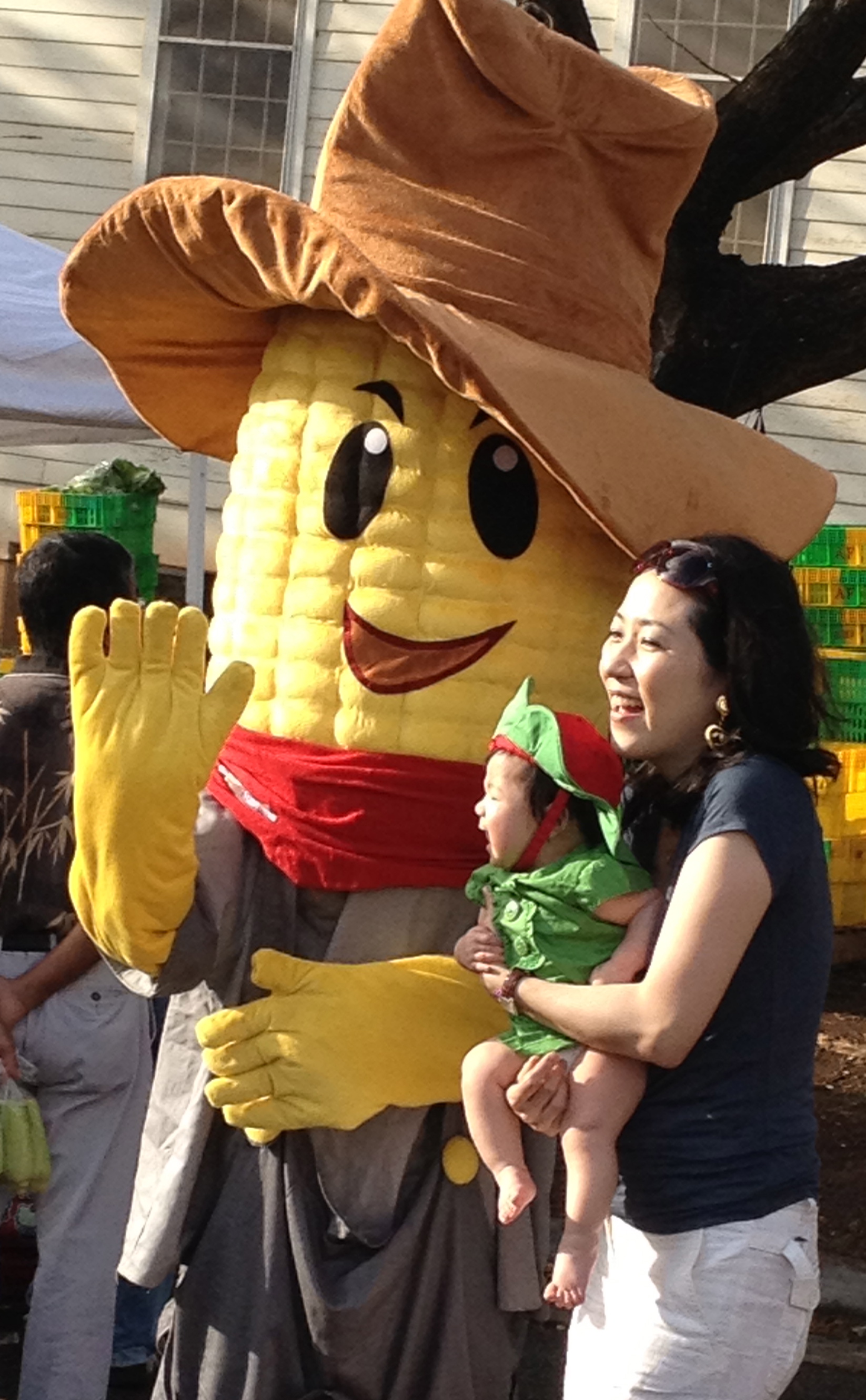 But, it isn’t just music and colors and the joys of the senses that we humans relate to. I was delighted watching the young mothers lining up to have photos taken with the “Corn Man.” I am smiling even now looking at the joy on the mother’s face. Ah, please help me focus as much on the Heart as on the Mind, God!
