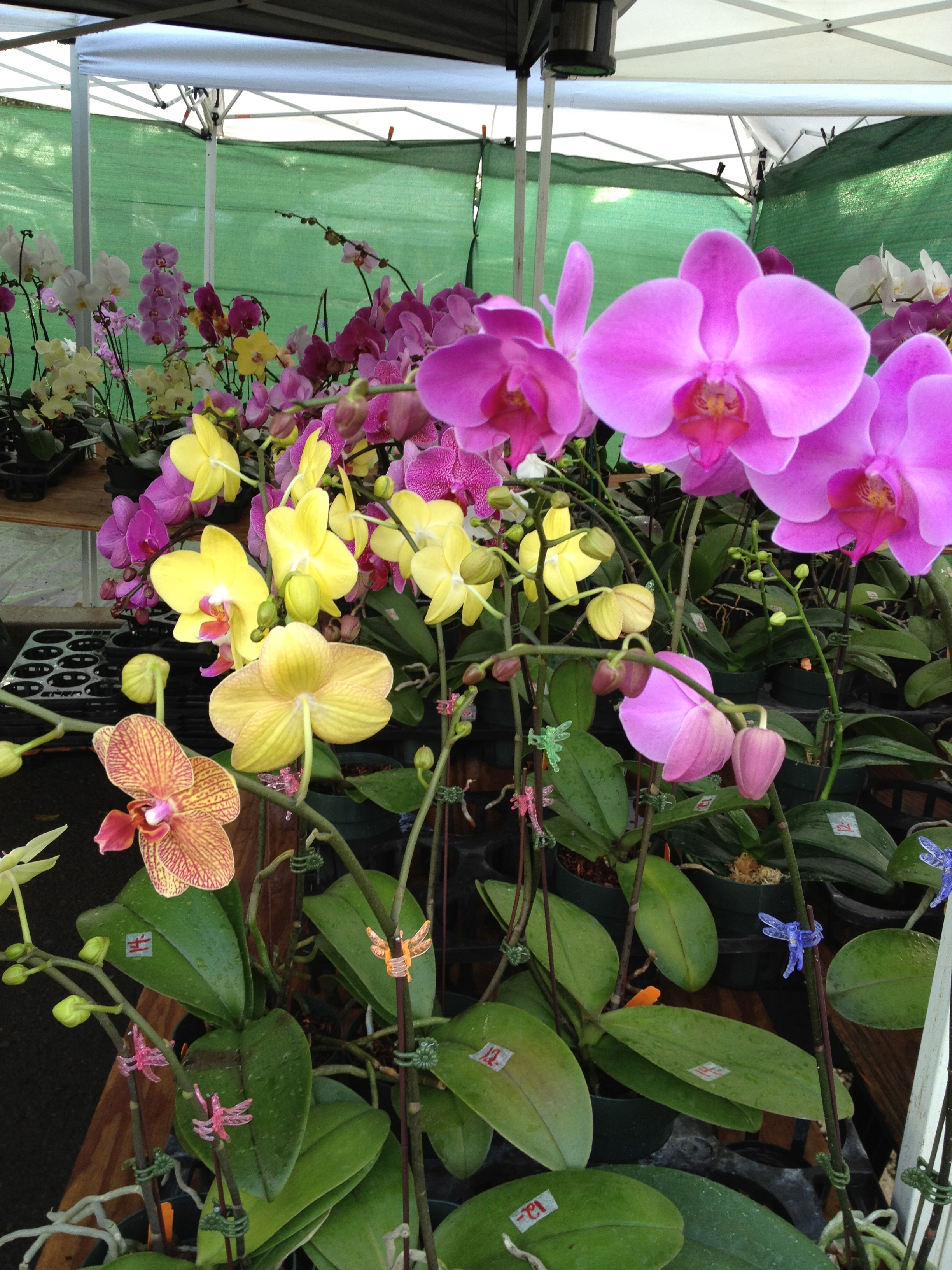 I am the visual one. I VIBRATE at colors. So the rainbow of orchids at the Farmers’ Market this Saturday left me aglow.