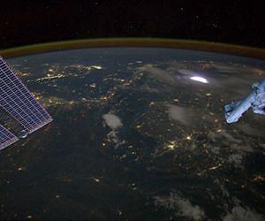 Looking at the photo — there is what looks like a pillar of red slightly above that bright white patch of a storm. That’s a Sprite. Sprites last one thousandth of a second.