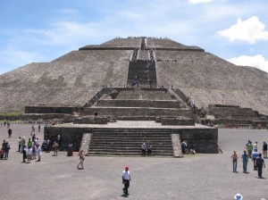 Next I stumbled on a blog about the Pyramid of the Sun in Teotihuacan in which I learned that it and the Pyramid of the Moon were not built by Aztecs but early in the 100s by a people unknown — maybe the Otomi. And that the city itself may have been multiethnic.