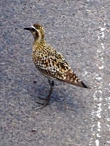 I just Googled Kolea and learned that the juveniles are not supposed to return until October. But this bird looked like it had somehow flown in early. For one thing it didn’t seem to know enough to be afraid — I got much closer to it than it is normally possible.. And it just looked puzzled, as if it hadn’t expected to land in a parking lot.
