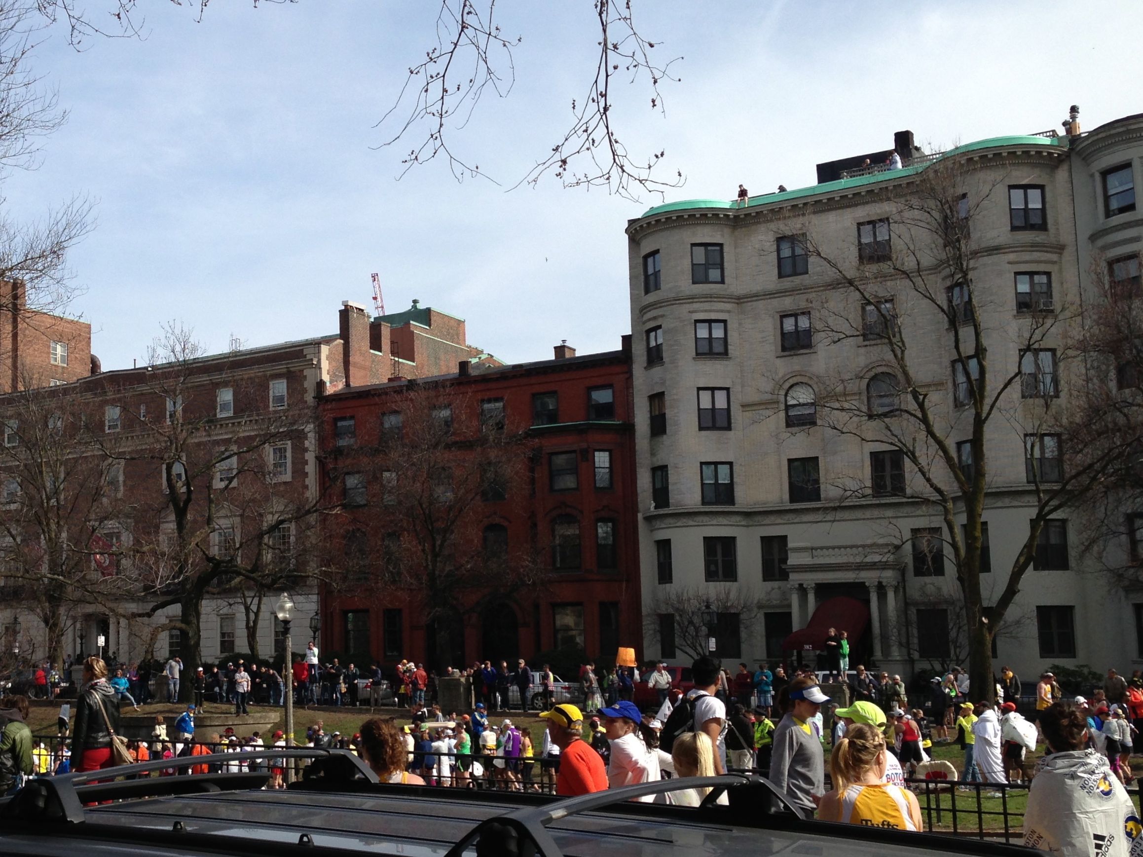 Oh, such an unreal day! At first, a great day with Kit doing well running the Boston Marathon. I waited for him with friends at the top of Heartbreak Hill (at mile 20.5) and even ran alongside for a minute or so. I was relieved and joyful.