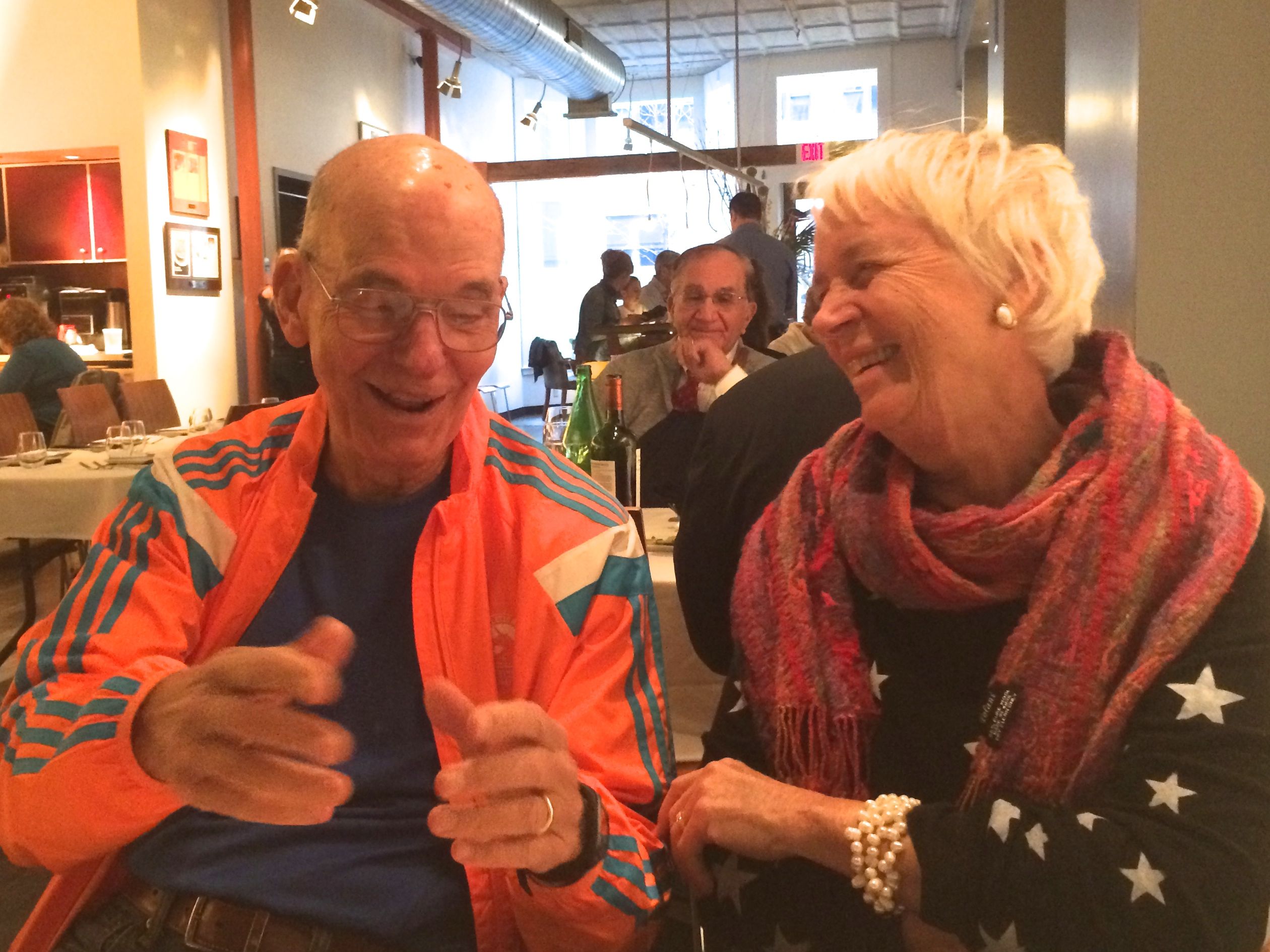 My wonderful husband Kit and I were photographed by our grandson Mark (going to Vassar) a few nights ago at dinner in Poughkeepsie, N.Y.