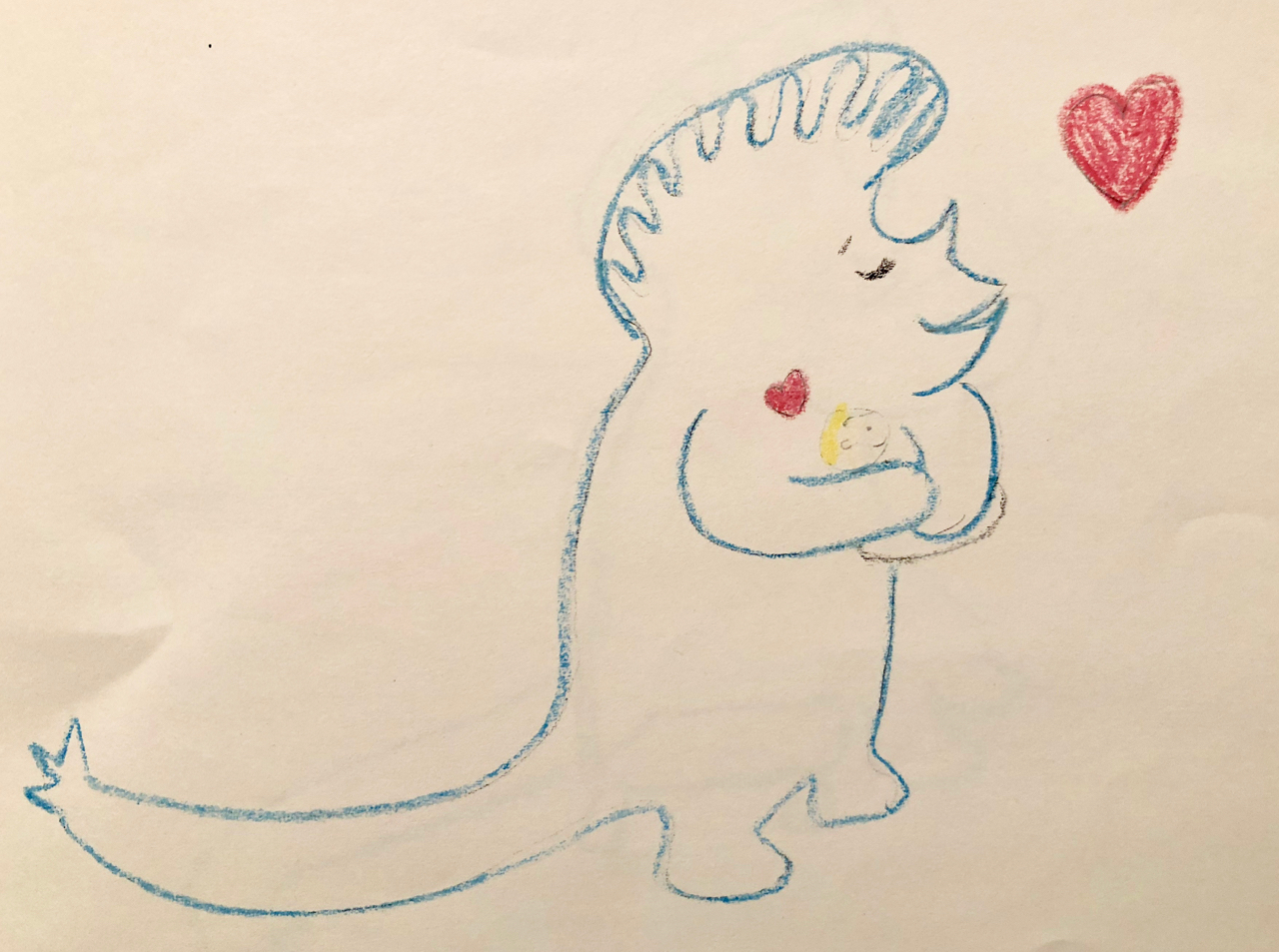This drawing is of me – AKA Tutusaurus – visiting Ian, my first grandchild. Our delightful daughter Sandy drew it after my Inner Tutusaurus had revealed herself. As I look at the drawing, God, it seems to me as if my daughter has captured Your Love. You love us as we love our children and grandchildren. Now that I am older I realize that love is far more than Loving Looks. True love is hard work . . . caring enough to help the loved one develop personal responsibility, and habits of self care and self respect.