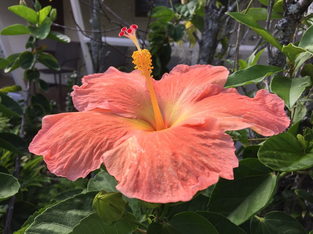 Thank You! Thank You for so much beauty! This is a hibiscus belonging to my spiritual director. I think she was puzzled as to why I was taking its photo. She sees theses every day. Hibiscus are Evanescent . . . .only lasting for a day. . . but maybe even more delightful due their short lives. It is easy to see outwardly expressed beauty. Inner beauty requires eyes that truly see.