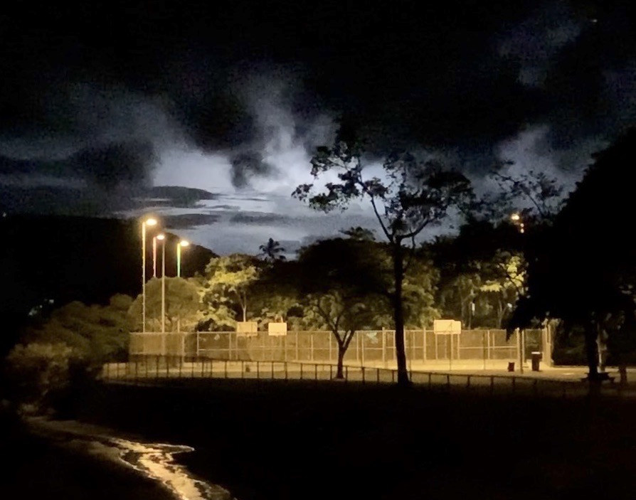It was lightening . . but so far away we heard nothing. Still, we cut our walk short. We mostly only get sheet lightening in Hawaii. I was curious. And waited with anticipation as it slowly grew closer. Although, with a flash every 5 or 10 seconds it seemed more like a THEY not a singular IT.