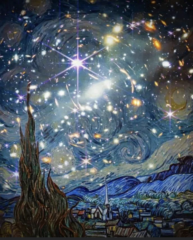 The picture depicted of Van Gogh’s Starry Night…we just saw the exhibit last week. It was said that because his brain was programmed differently, he saw things in a unique way. Recent discoveries indicate that perhaps the way he saw things was more accurate than what we can conventionally see . The galaxies that were interspaced in his work are now being discovered, so he was into something.