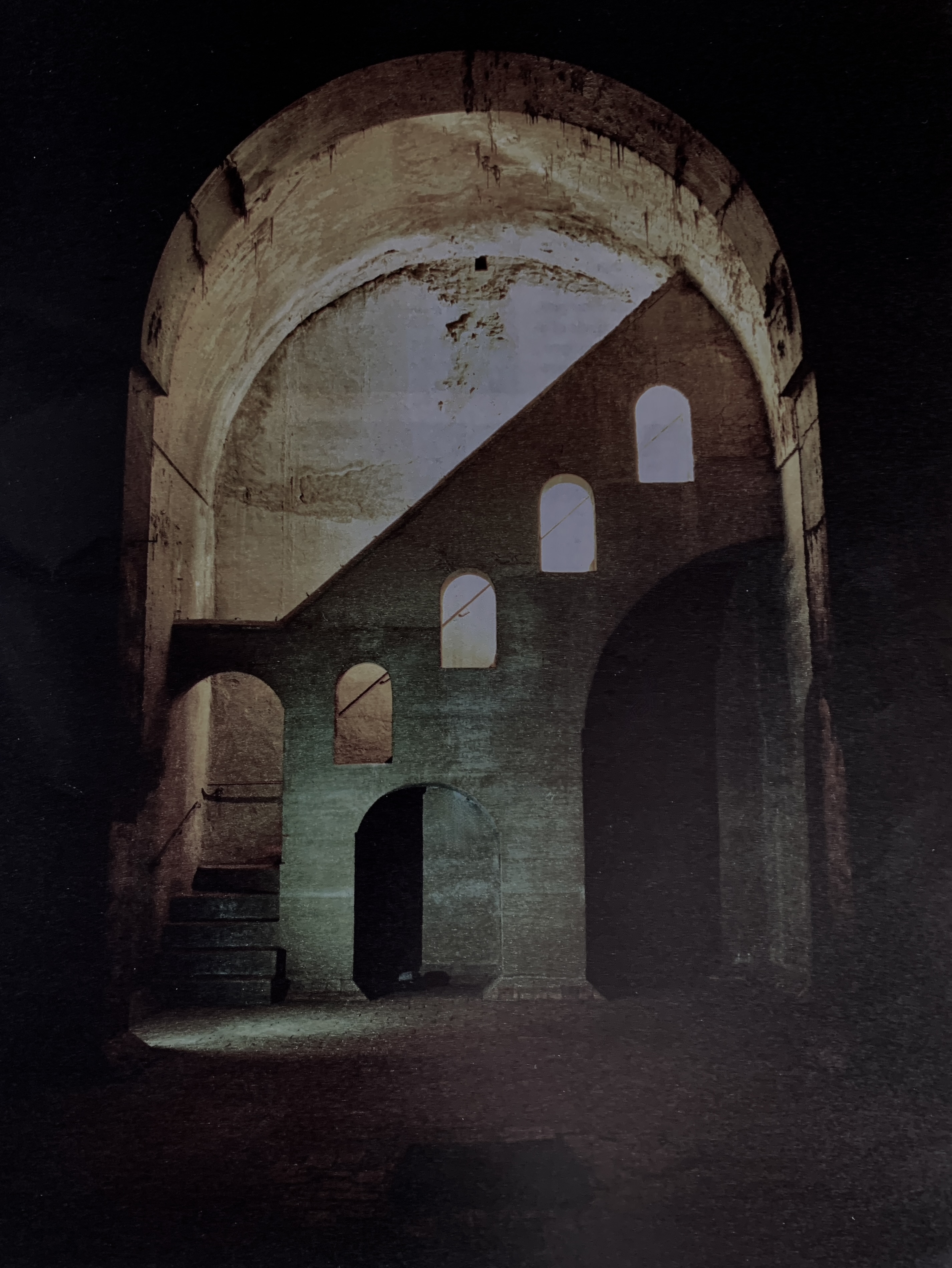 I saw this photography in the current issue of the Smithsonian. It is of the basement area (where the workers lived) of the Alhambra. My wonderful husband Kit just said, “That is the gloomiest photo I have seen in a long time!”